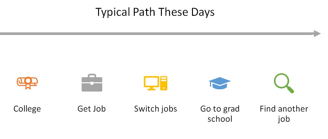 This story is all too common. However, our conventional beliefs about the working world is that it is working just fine so they don’t tell anyone. It is surprising how many people I talk to in these situations that have not told anyone in their life. There”s probably a deeper question about why they are telling me, a stranger on the internet, but that’s not worth exploring here. Career stagnation and finding yourself lost on the journey still brings enormous shame because we are operating with broken assumptions.